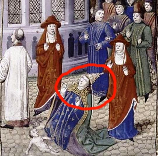 Bartolomeo Sacchi, bibliotecar al Vaticanului, a publicat în 1479 o istorie a vieții papilor. În această carte e cuprinsă și viața Ioanei, un pretins papă-femeie. Se spune că ea era o femeie bine înzestrată, născută în Anglia, cu studii serioase la Atena, și care, prin știința ei extraordinară, ar fi urcat pe tronul pontifical la 855. Rămasă însărcinată, de pe urma relațiilor cu un servitor (sau demnitar), presupusa papesă Ioana a născut în toiul unei procesiuni, aproape de Colloseum. Se spune că ar fi murit îndată după naștere sau că ar fi fost ucisă pe loc. Ar fi ocupat scaunul apostolic timp de 2 ani, 1 lună și 4 zile… Sacchi afirmă că, în urma acestui incident, la alegerea unui papă nou, acesta se așeza într-un fotoliu anume găurit, care permitea să i se verifice sexul real.