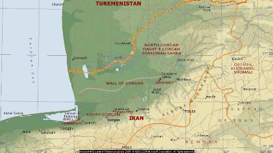 – Zidul se întinde de la vest la est, începând din coasta Mării Caspice, lângă orașul Gumishan și dispare în Munții Pishkamar, care se află la intersecția munților Elburz și Kopet Dag;